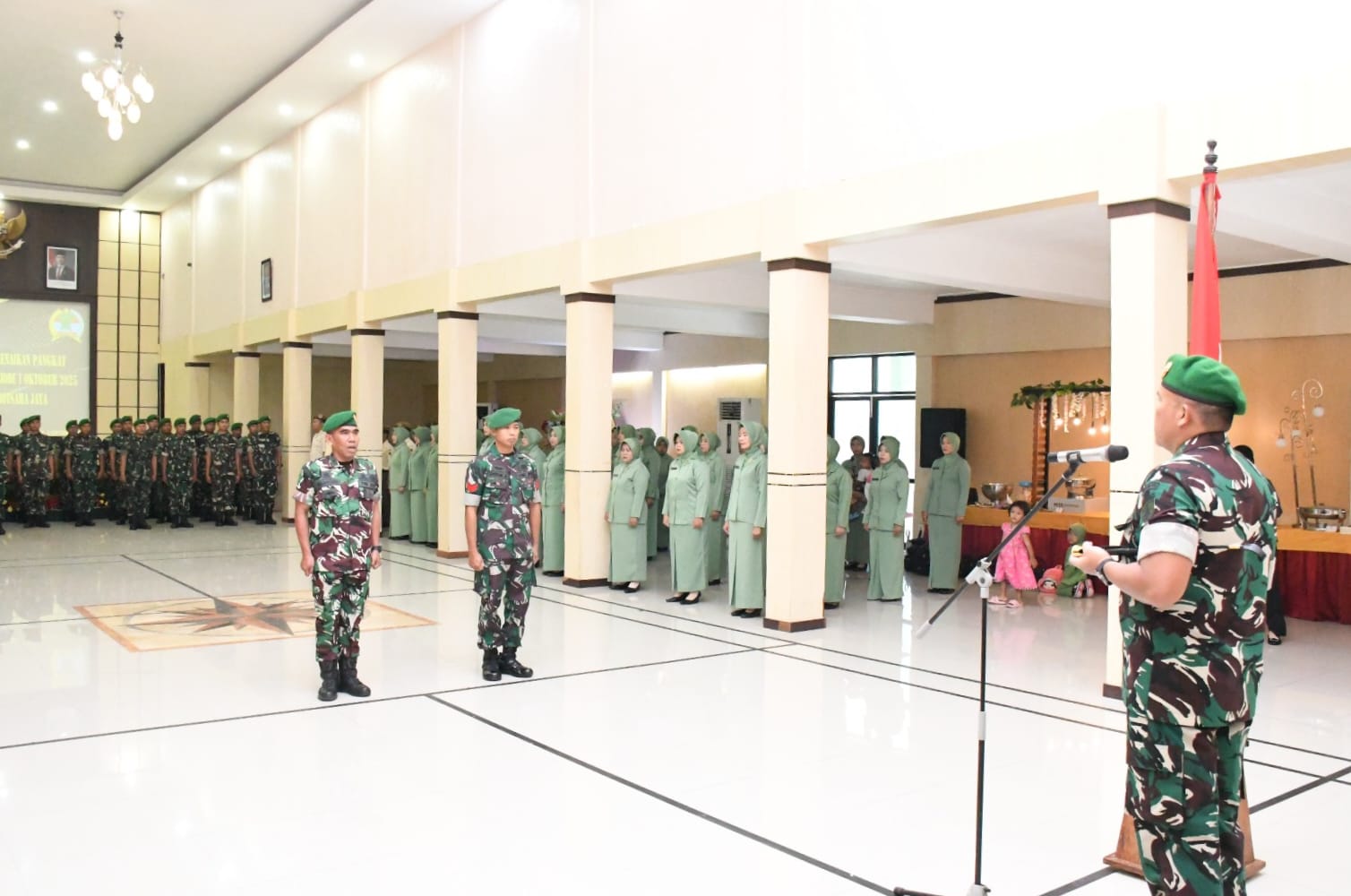 “Di samping keberhasilan bapaknya juga pasti ada dukungan dari ibu-ibu Persit. Karena bagaimana pun suaminya, pasti juga pengaruh istrinya. Jadi terima kasih kepada ibu-ibu Persit yang sudah mendampingi bapak-bapaknya sehingga oleh negara diberikan kepercayaan untuk naik pangkat satu tingkat lebih tinggi,” terangnya.