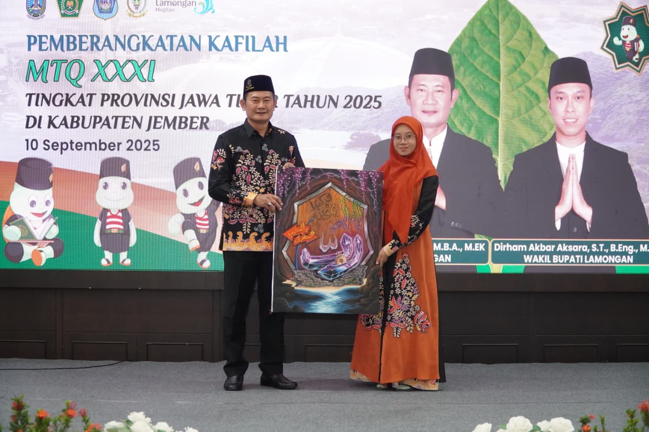 Lamongan,Info Faktual.com,- Bupati Lamongan Yuhronur Efendi berangkatkan 56 kafilah Kabupaten Lamongan untuk mengikuti Musabaqah Tilawatil Quran (MTQ) XXXI tingkat Provinsi Jawa Timur tahun 2025, Rabu (10/9) di Pendopo Lokatantra menuju Kabupaten Jember sebagai lokasi digelarnya MTQ XXXI.