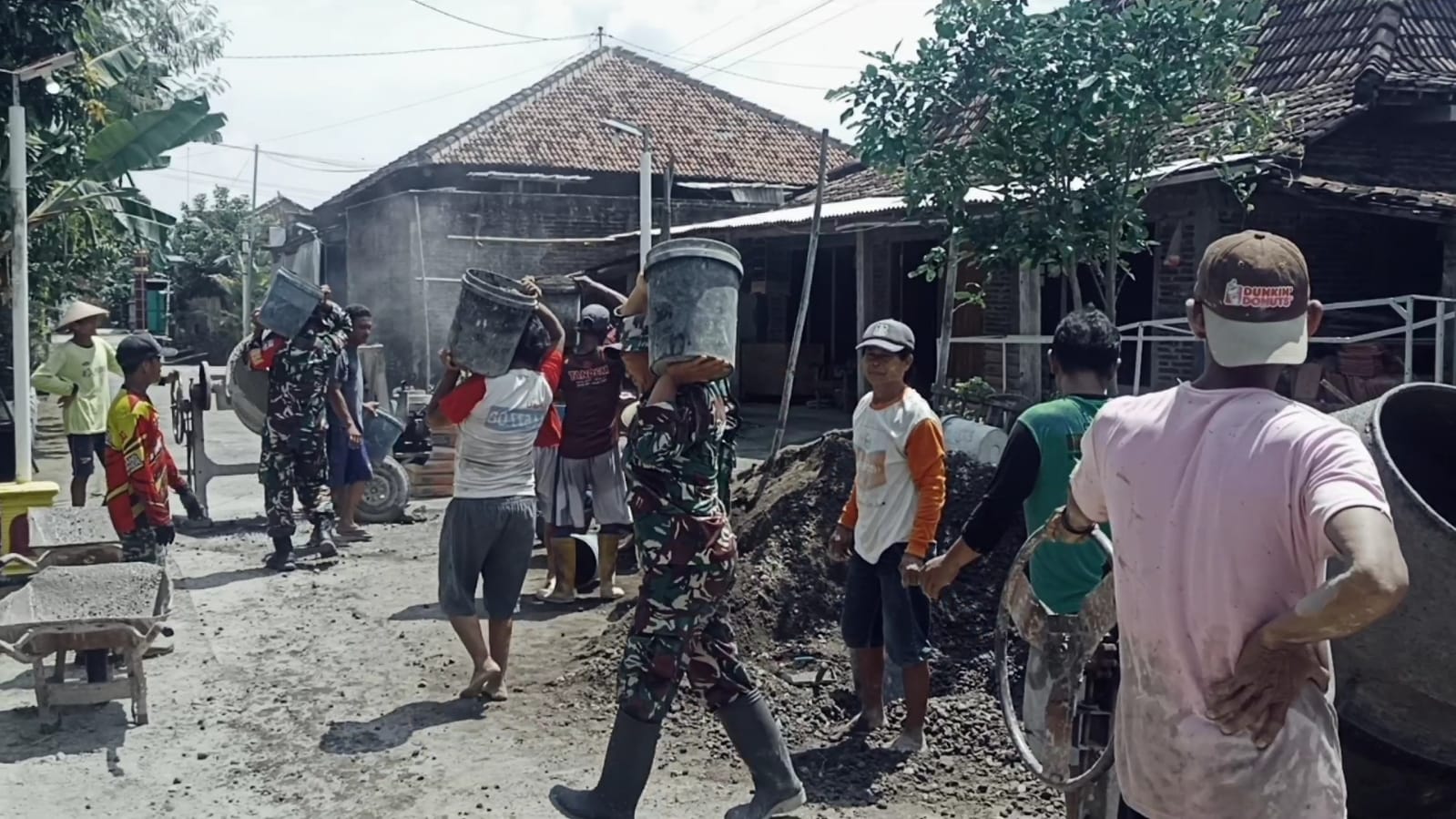 Pelda Thoyibi terlihat aktif terlibat dalam setiap tahapan pembangunan talud, mulai dari menggali pondasi, mengaduk semen, hingga mengangkat ember berisi pasir dan batu. Ia bahu-membahu bersama warga, tanpa canggung berbaur dan bekerja keras demi kepentingan bersama.