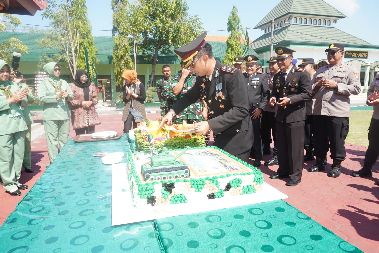 Pada hari yang bersejarah ini, Kapolres Lamongan, AKBP Agus Dwi Suryanto S.I.K.,M.H., memimpin langsung rombongan kepolisian mendatangi Markas Kodim 0812/Lamongan. Kedatangan ini bukan untuk urusan dinas biasa, melainkan untuk memberikan ucapan selamat ulang tahun kepada para Prajurit dengan membawa bingkisan istimewa: tumpeng dan kue tart yang menjadi simbol syukur dan kebersamaan.