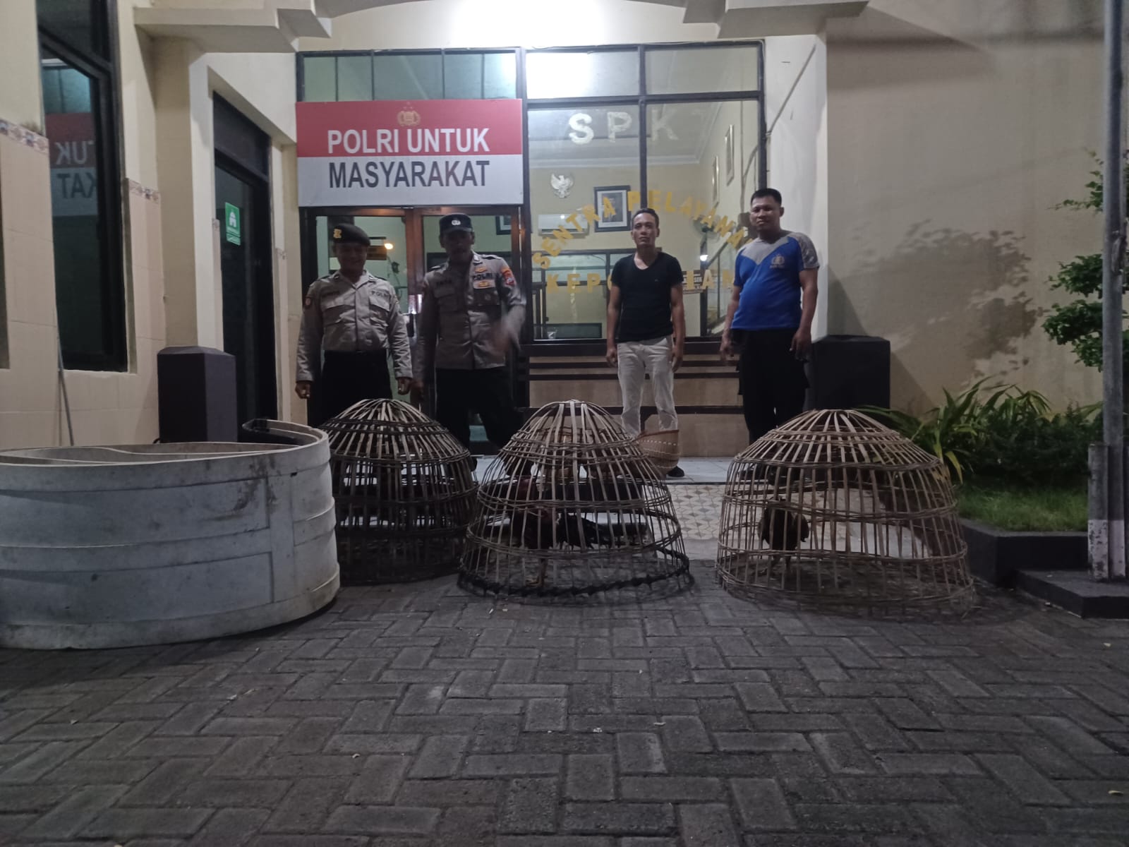 Dari lokasi kejadian, petugas berhasil mengamankan sejumlah barang bukti, di antaranya 4 ekor ayam jantan, 2 buah kandang ayam bundar, 1 unit HP Oppo warna hitam, 1 buah area sabung ayam (kalangan) warna biru muda, dan 2 buah kiso (tempat ayam).