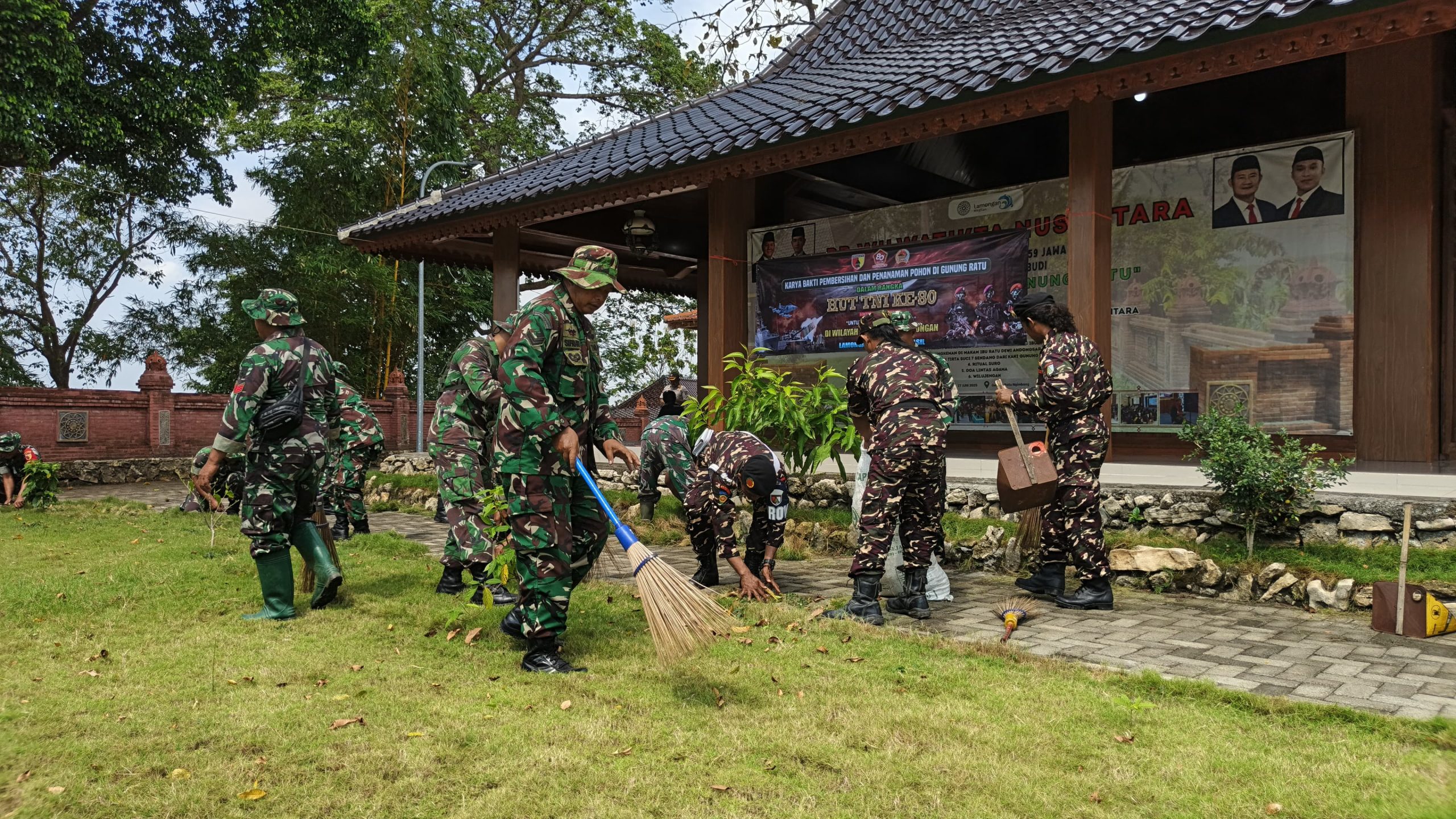 Lamongan,infoFaktual.com, – Menyambut Hari Ulang Tahun (HUT) ke-80 Tentara Nasional Indonesia (TNI), Komando Distrik Militer (Kodim) 0812/Lamongan melalui seluruh jajaran Komando Rayon Militer (Koramil) melaksanakan kegiatan karya bakti massal. Salah satu fokus kegiatan ini adalah pembersihan situs cagar budaya Makam Nyi Andong Sari yang terletak di Gunung Ratu, Dusun Cancing, Desa Sendangrejo, Kecamatan Ngimbang, Kabupaten Lamongan, Sabtu (20/09/2025).