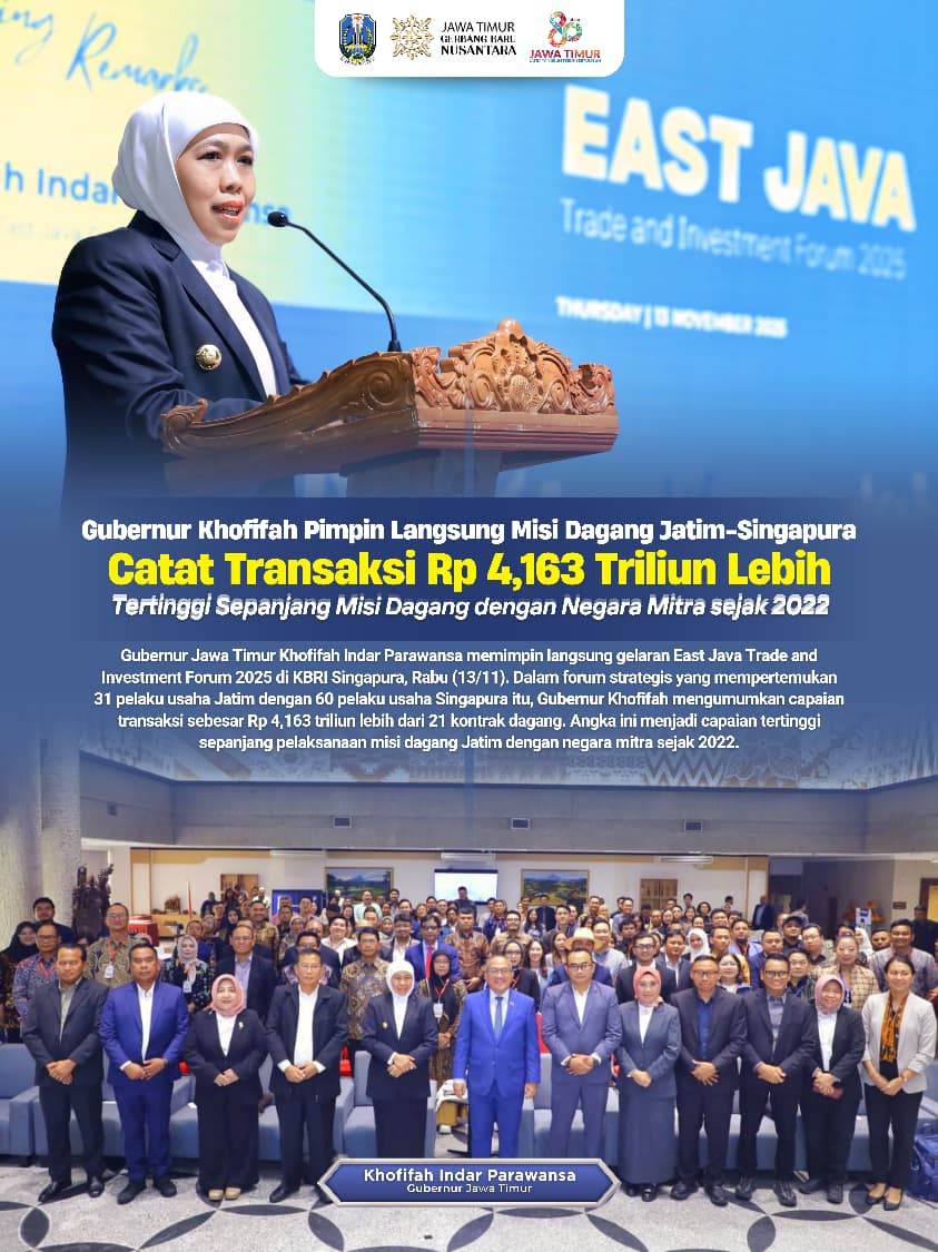 Gubernur Khofifah menyebut hubungan dagang antara Jawa Timur dengan Singapura memiliki potensi besar untuk terus ditingkatkan seiring terbukanya informasi serta peluang pasar yang dapat dieksplorasi secara lebih luas melalui berbagai media. Bagi pelaku usaha, kondisi ini tidak hanya menghadirkan peluang, tetapi juga tantangan akibat semakin ketatnya persaingan.