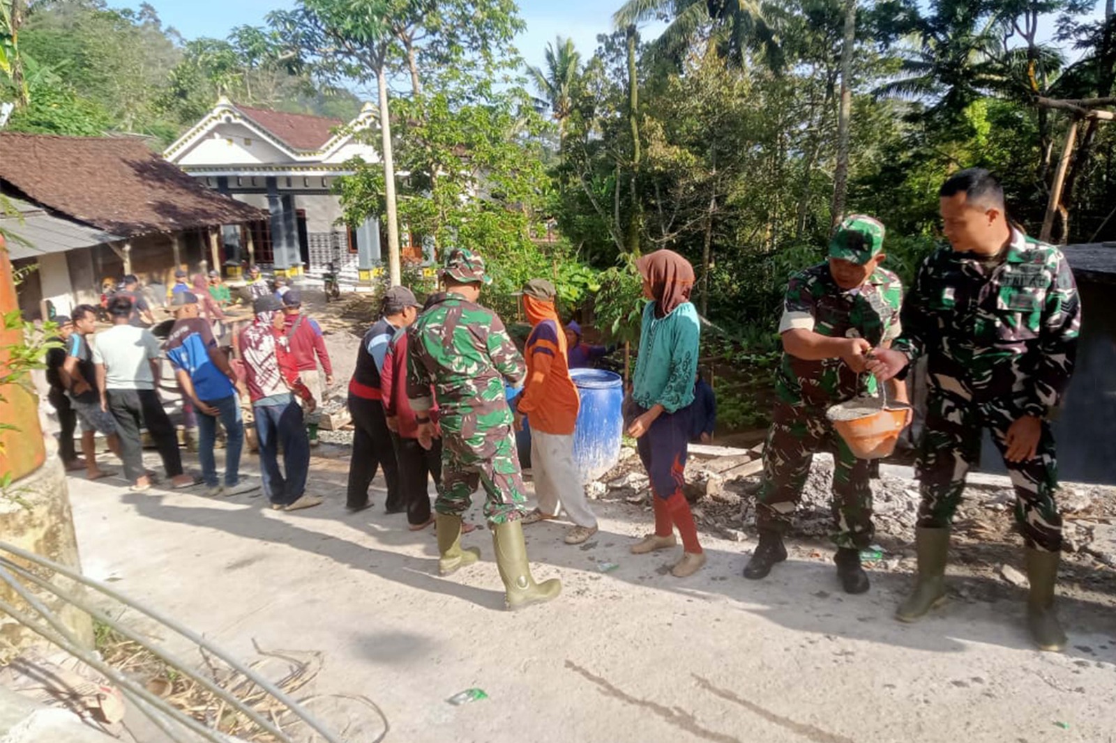 Sejak pagi, semangat gotong royong membara. Prajurit Koramil 0806-05/Kampak dan warga Desa Ngadimulyo bekerja tanpa sekat. Ada yang mengangkut material, mencampur adukan semen, hingga menata bata. Suasana penuh keakraban itu menunjukkan, ketika TNI dan rakyat bersatu, pekerjaan berat menjadi ringan.