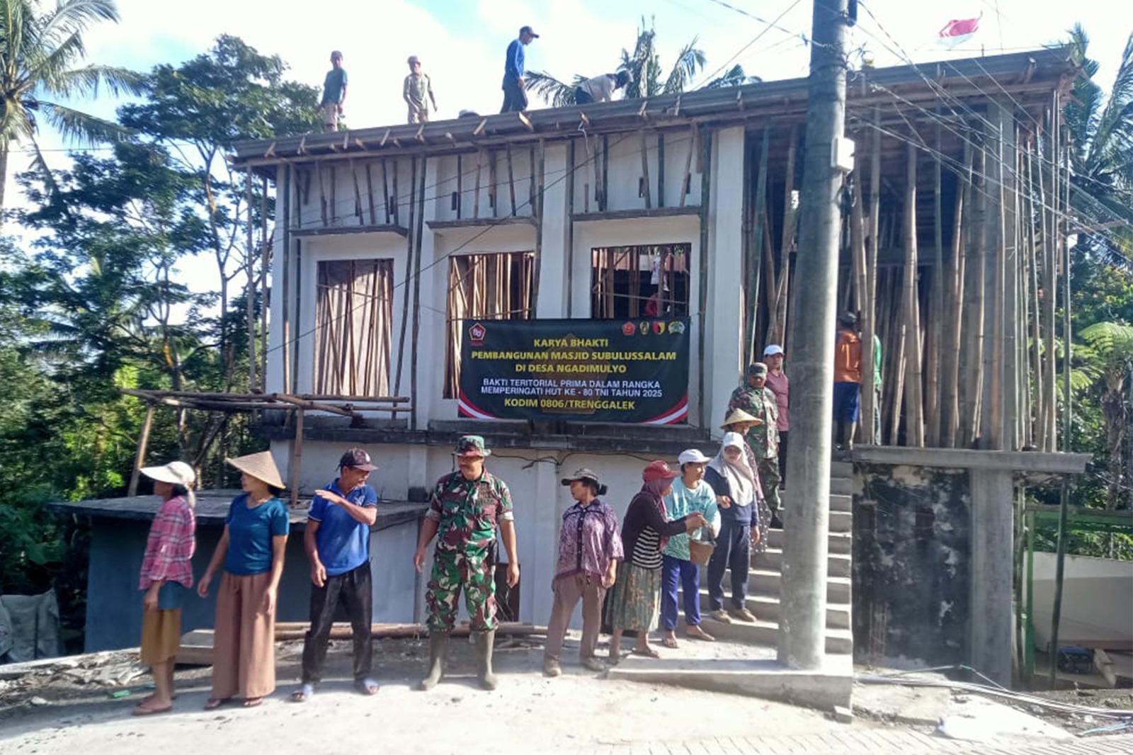 Kepala Desa Ngadimulyo pun tak bisa menyembunyikan rasa bangganya. “Kami sangat berterima kasih kepada Kodim 0806 dan Koramil Kampak. Kehadiran TNI mempercepat pembangunan masjid sekaligus menguatkan rasa persaudaraan di desa kami. Ini bukti nyata TNI selalu bersama rakyat,” ucapnya.