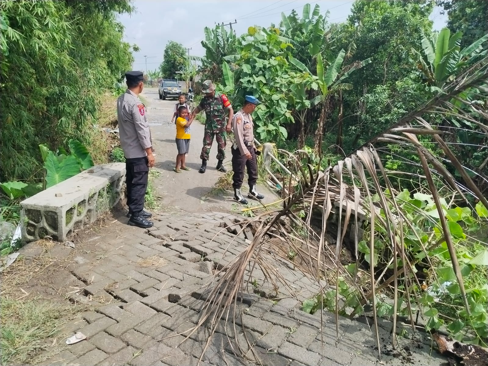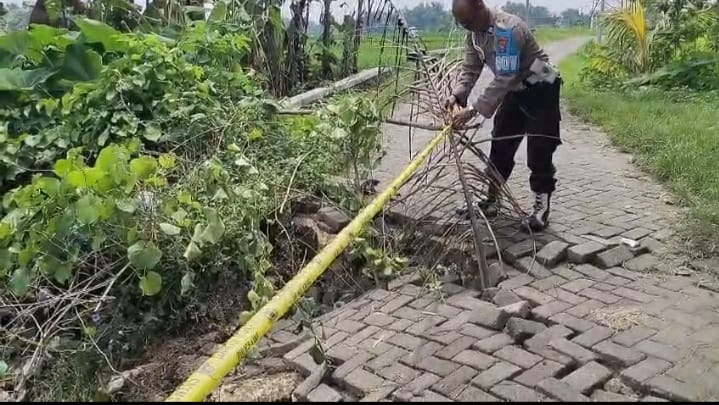 Jembatan Desa Sewor Ambles, Polsek Sukorame Langsung Pasang Garis Polisi Demi Keselamatan Pengguna Jalan.
