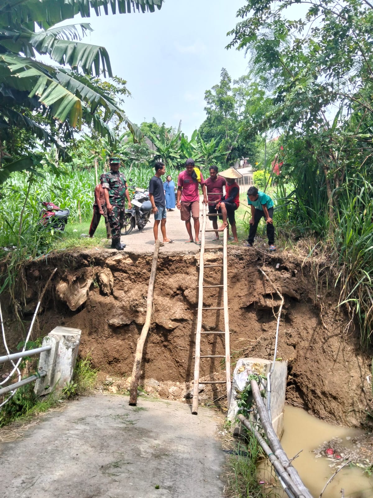 Babinsa juga membantu mendata dampak yang ditimbulkan terhadap aktivitas warga dan infrastruktur desa, yang akan menjadi dasar pengajuan bantuan dan percepatan perbaikan jembatan.