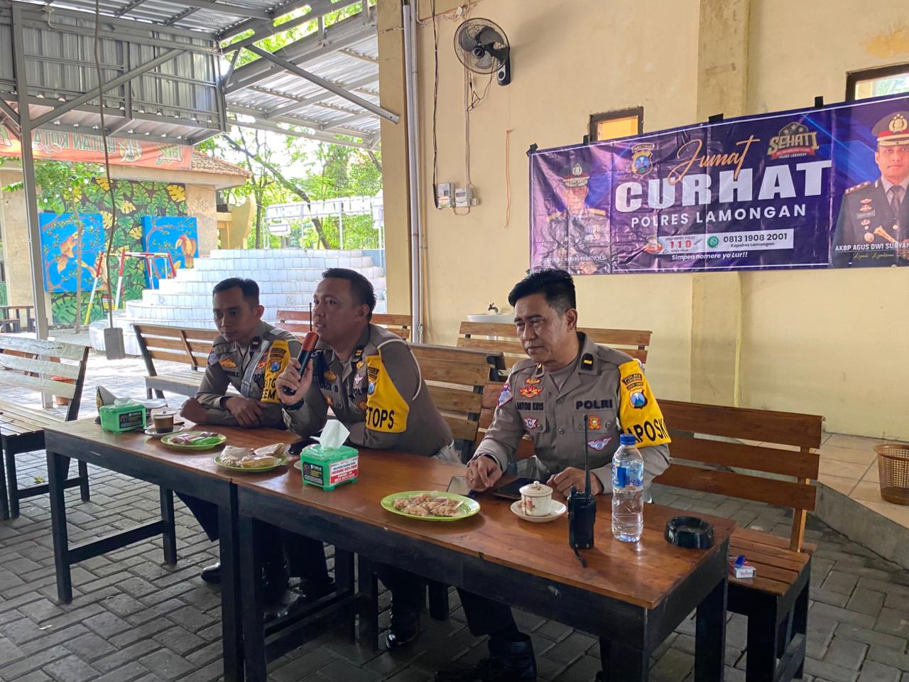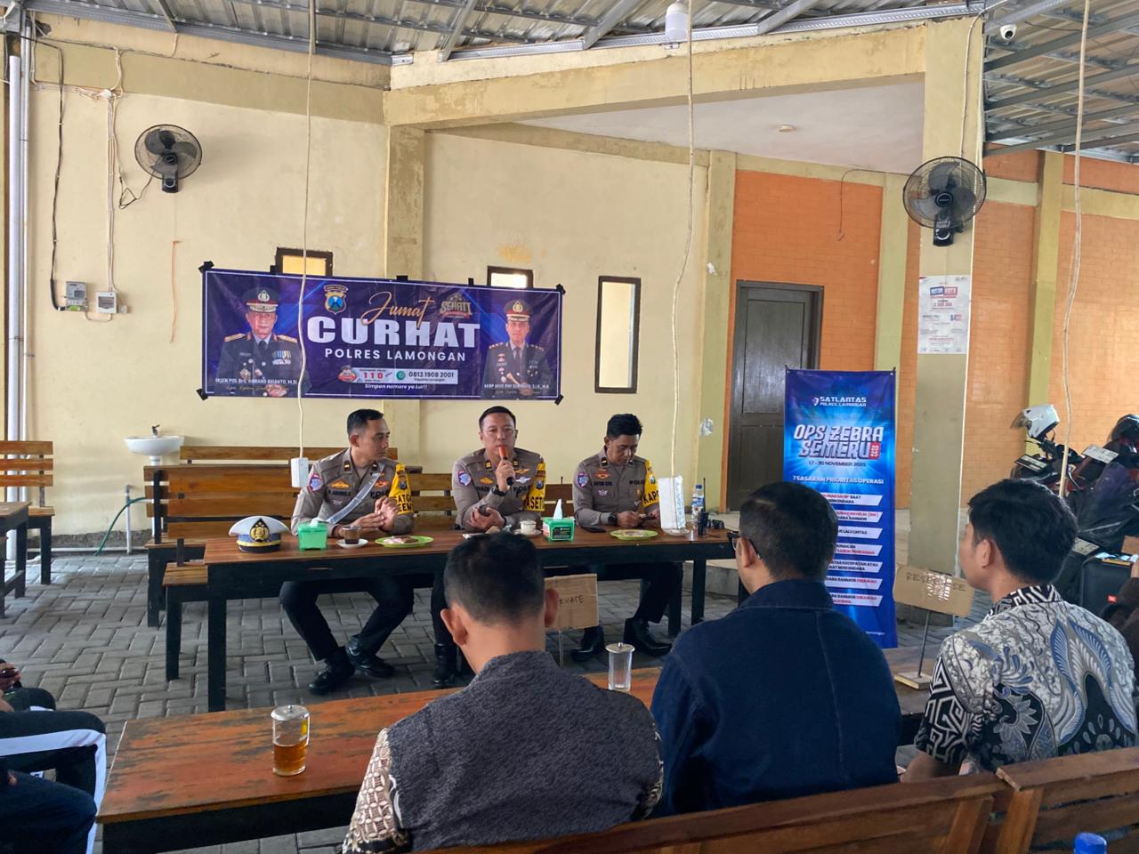 Dalam suasana santai namun penuh manfaat, petugas Satlantas memberikan edukasi tentang keselamatan berlalu lintas serta menerima pertanyaan, aspirasi, dan keluhan masyarakat terkait permasalahan lalu lintas di wilayah Lamongan.