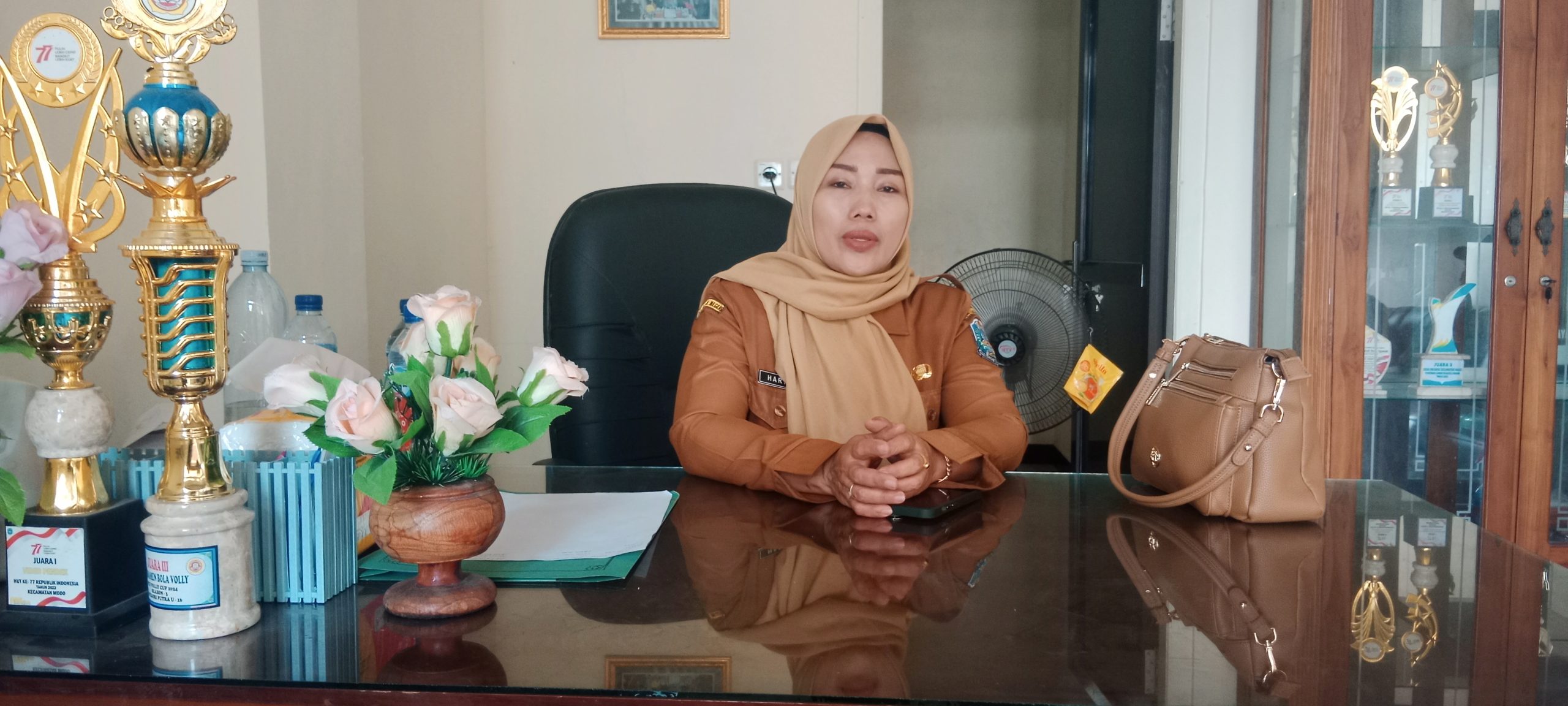” Saya berharap dapat menjadi pelayanan masyarakat yang terbaik jadi bekerja dengan penuh tanggung jawab dan rasa memiliki semangat ingin memajukan Desa.” Ungkap Kades Nguwok Sri Hartutik di ruang kerjanya 17/10.