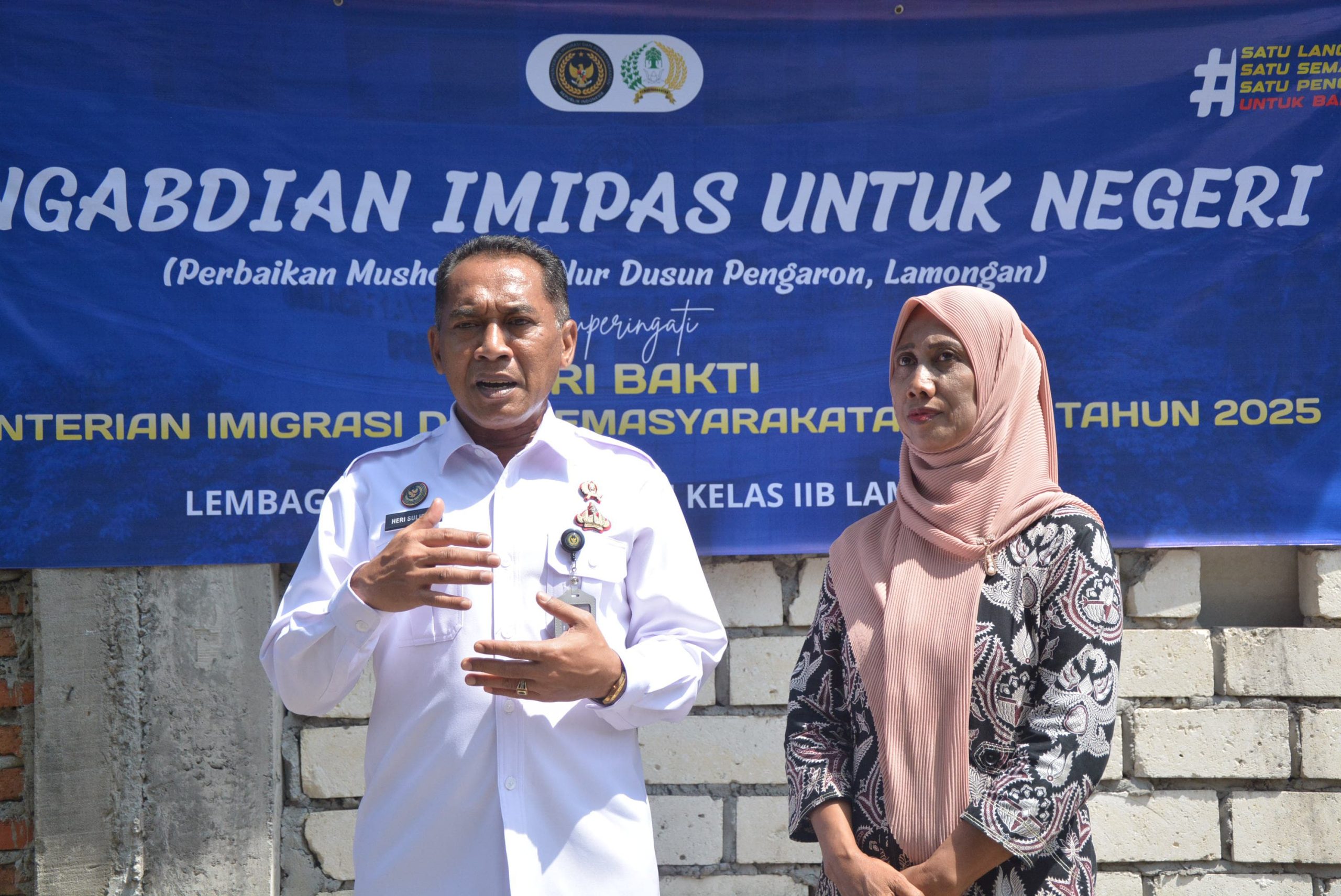 Lamongan,InfoFaktual.com – Semangat pengabdian menyapa pelosok Lamongan. Pada Kamis, 20 November 2025, Kepala Lapas Kelas IIB Lamongan meninjau secara langsung proses renovasi Musholla An-Nur di Dusun Pengaron, Desa Pengumbulanadi, Kecamatan Tikung, Kabupaten Lamongan. Kegiatan ini menjadi bagian dari program Pengabdian Imipas untuk Negeri dalam rangka memperingati Hari Bakti Kementerian Imigrasi dan Pemasyarakatan ke-1 dengan mengusung tema “Satu Langkah, Satu Semangat, Satu Pengabdian untuk Bangsa.”