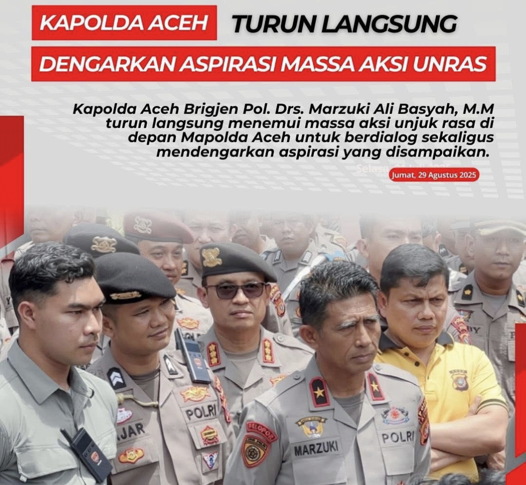 Kapolda juga menegaskan bahwa menyampaikan pendapat adalah hak setiap warga negara, tetapi harus dilakukan dengan cara yang santun, tertib, dan menghormati aturan hukum. Menurutnya, sikap mahasiswa Aceh yang mengedepankan kedamaian dalam berunjuk rasa patut menjadi contoh.