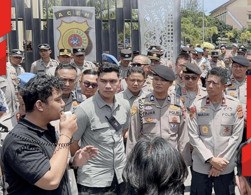 Dalam aksi tersebut, Kapolda Aceh hadir langsung menemui mahasiswa. Dengan penuh kehangatan, Kapolda mengawali pertemuan dengan ucapan salam dan rasa syukur atas kepedulian generasi muda terhadap isu-isu kebangsaan.