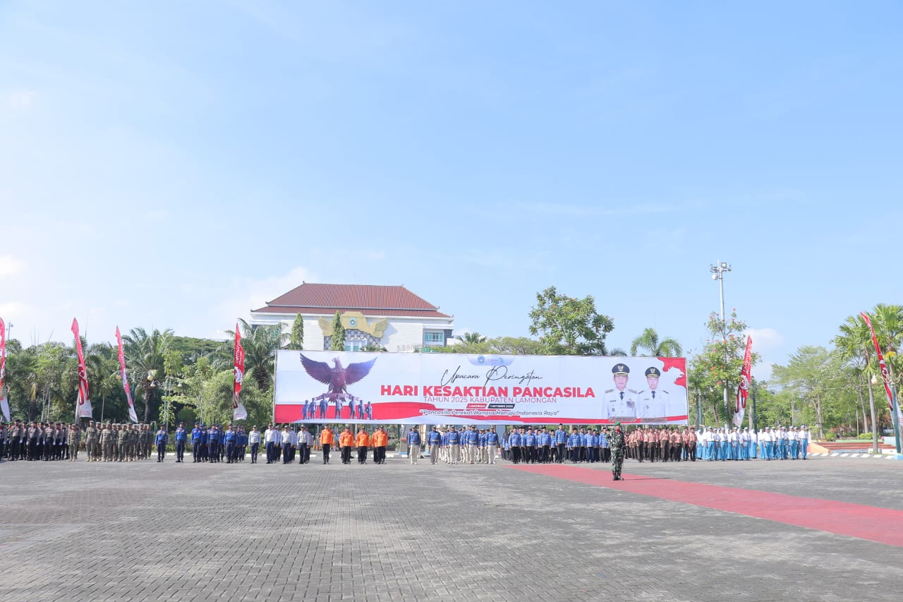 Kegiatan tersebut dipimpin langsung oleh Bupati Lamongan selaku Inspektur Upacara dan dihadiri Forkopimda Kabupaten Lamongan, pejabat TNI-Polri, ASN, serta tamu undangan lainnya.