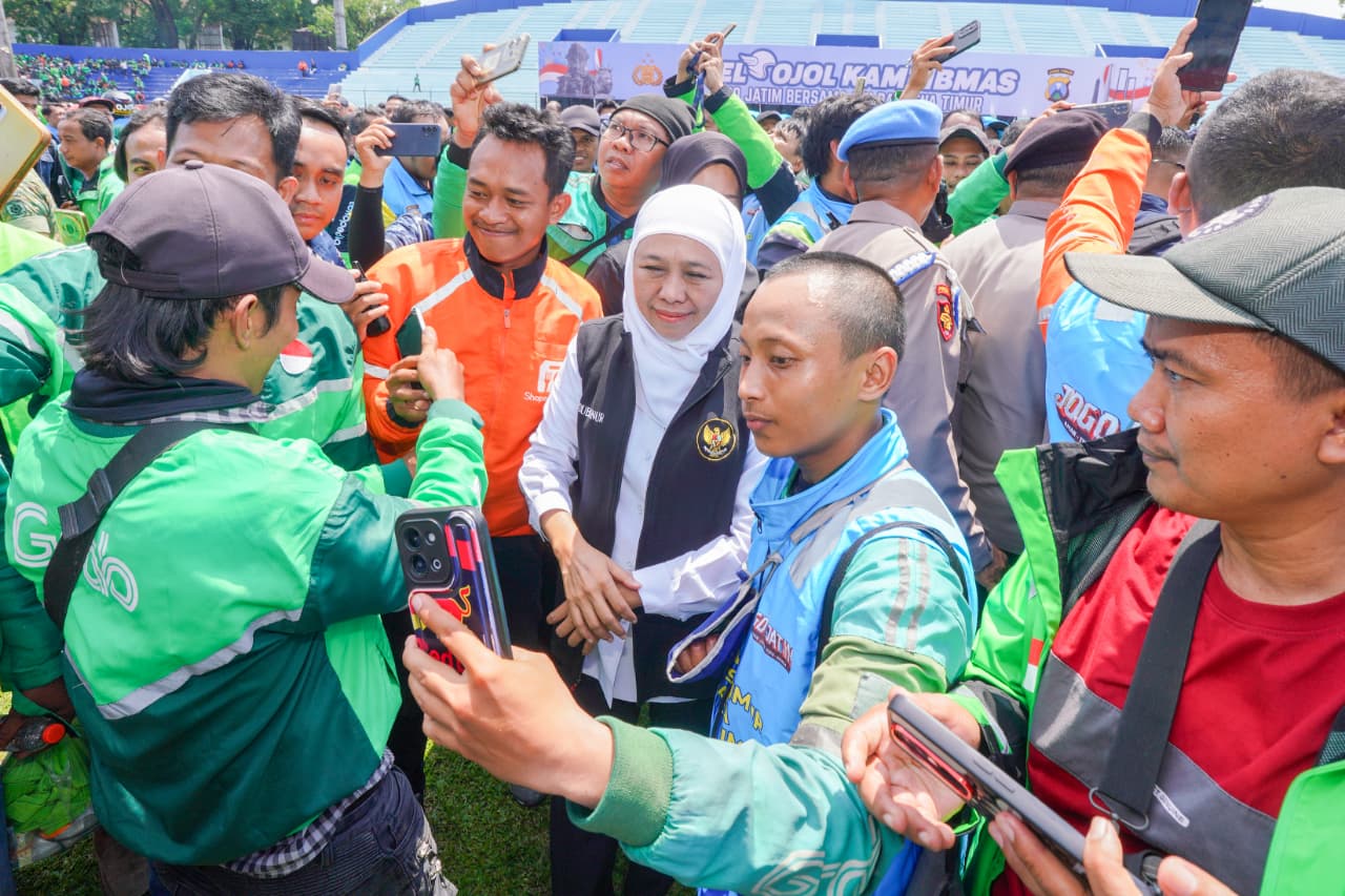 “Terima kasih kepada bapak Kapolda Jatim serta saudara-saudara kita semua rekan ojol. Apel ini semakin menegaskan komitmen pemerintah termasuk Pemprov Jatim untuk melibatkan Ojol dalam menjaga Jatim tetap aman dan damai di tengah kondisi penuh dinamika saat ini,” ungkap Khofifah.