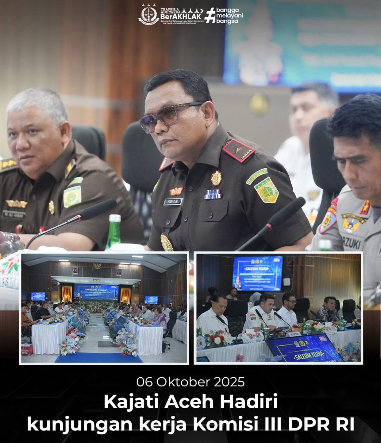 Aceh, InfoFaktual.com, – Kepala Kejaksaan Tinggi Aceh, Yudi Triadi, S.H., M.H., didampingi para Asisten dan Kepala Kejaksaan Negeri se-Aceh, menghadiri kegiatan kunjungan kerja Komisi III DPR RI pada Reses Masa Persidangan I Tahun 2025-2026 di Provinsi Aceh yang berlangsung di Mapolda Aceh, Senin kemarin (6/10).