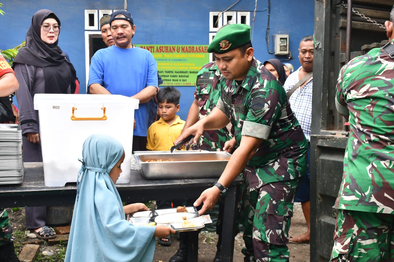 Deli Serdang, InfoFaktual.com, – Kodam I/Bukit Barisan (I/BB) menyalurkan 250 paket Makan Sehat Bergizi (MSB) kepada anak-anak panti asuhan di Kabupaten Deli Serdang. Kegiatan dipusatkan di Panti Asuhan Yatim Piatu Takaful, Jalan Pertahanan, Gang Bakaran Batu, Dusun IV, Desa Patumbak Kampung, Jumat kemarin (24/10/2025).