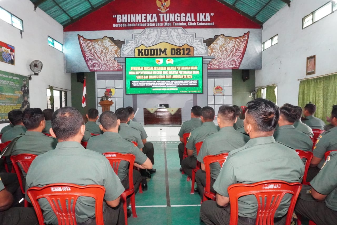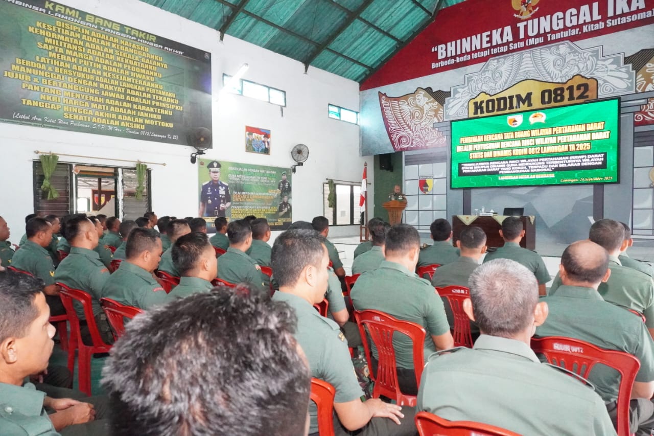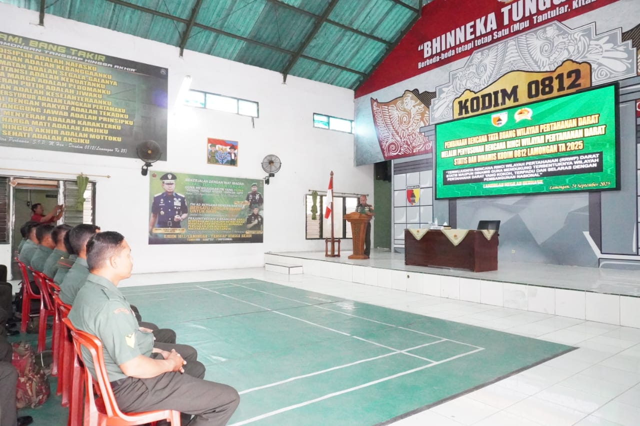 Lamongan,InfoFaktual.com – Komandan Kodim 0812/Lamongan, Letkol Inf Deni Suryo Anggo Digdo, memimpin kegiatan penting berupa pembinaan rencana tata ruang wilayah pertahanan darat. Kegiatan ini fokus pada penyusunan Rencana Rinci Wilayah Pertahanan (RRWP) darat, baik yang bersifat statis maupun dinamis, untuk tahun 2025. Kamis (25/09/2025)