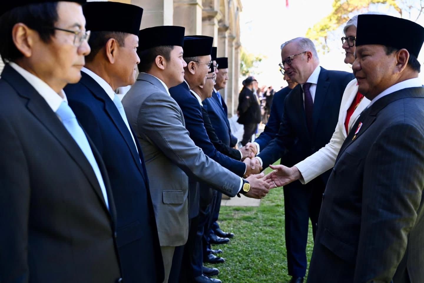 Setibanya di Kirribilli House, Presiden Prabowo disambut langsung oleh PM Albanese di halaman depan salah satu kediaman resmi PM Australia tersebut. Suasana hangat dan penuh keakraban tampak mewarnai momen penyambutan, mencerminkan hubungan personal yang erat di antara kedua pemimpin. Usai penyambutan, Presiden Prabowo menandatangani buku tamu kenegaraan sebagai bentuk penghormatan diplomatik.
