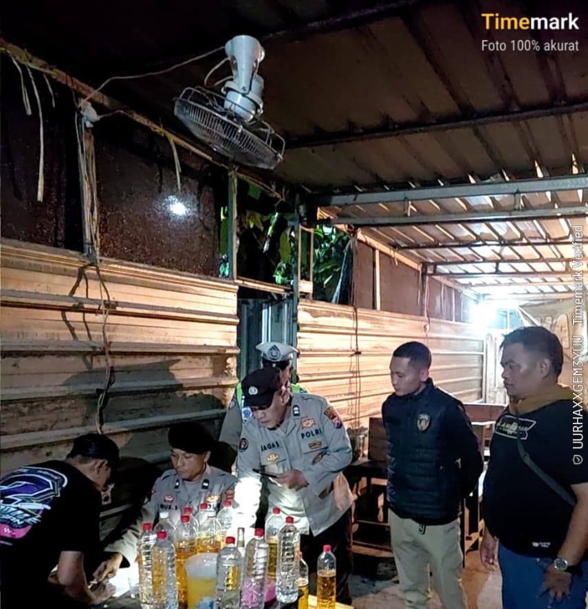 Setibanya di lokasi, petugas melakukan pemeriksaan serta mengamankan sejumlah barang bukti minuman keras untuk proses lebih lanjut.