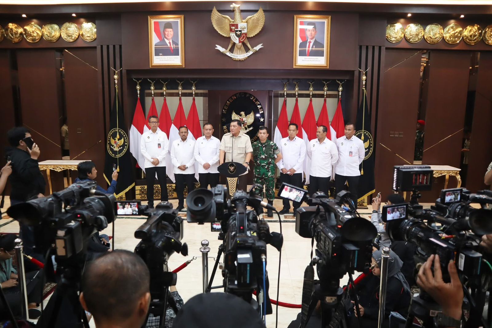 “Saya baru saja menjalankan entry briefing dengan para pejabat utama Kemenko Polkam. Saya memberikan pengarahan pertama kepada para pejabat utama yang selama beberapa bulan lamanya akan membantu saya sebagai Menko Polkam ad interim,” ujar Sjafrie dalam sesi konferensi pers usai rapat.