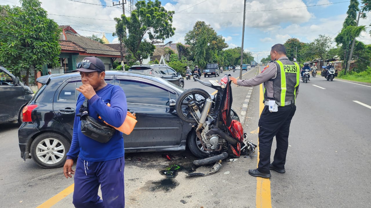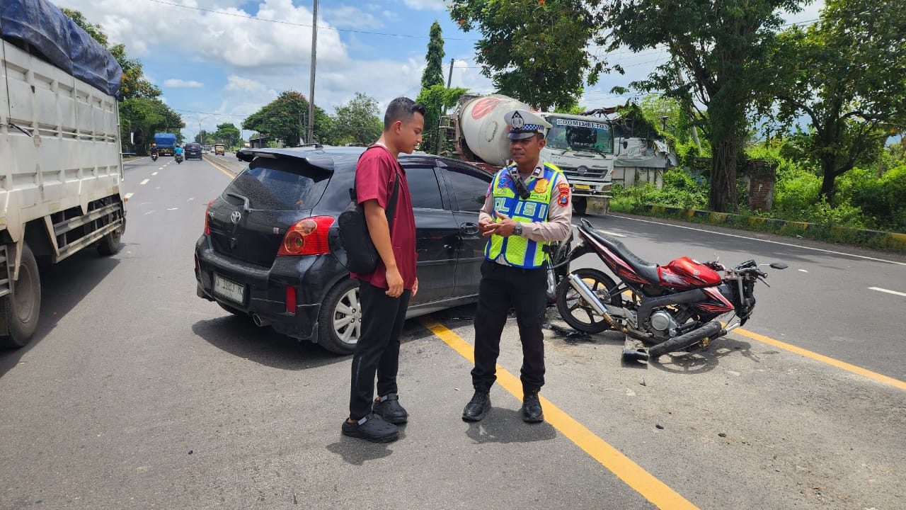Mobil Yaris Tabrak Vixion di Turi Lamongan, Unit Gakkum Satlantas Bantu Evakuasi Korban Luka