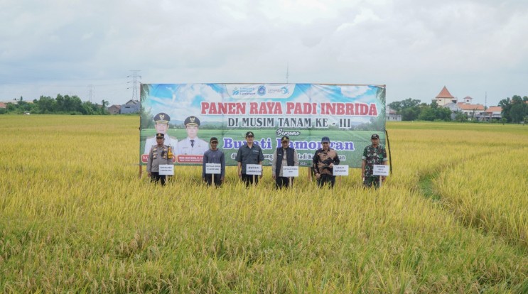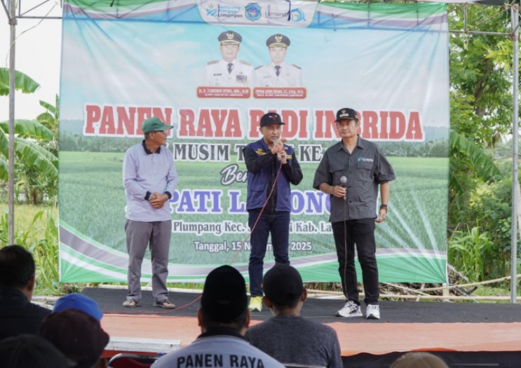 “Pertanian di Kabupaten Lamongan terus membawa capaian. Tahun ini Kabupaten Lamongan menempati peringat pertama pada produksi padi Gabah Kering Giling (GKG) se Provinsi Jawa Timur. Dan hari ini di Desa Plumpang berhasil melaksanakan panen raya ketiga dengan harga melampaui Harga Pembelian Pemerintah (HPP) yakni 6.500 rupiah,” tutur Bupati Lamongan Yuhronur Efendi saat turut serta melaksanakan panen raya ketiga inbrida, Sabtu (15/11/2025) di Desa Plumpang Kecamatan Sukodadi siang ini.