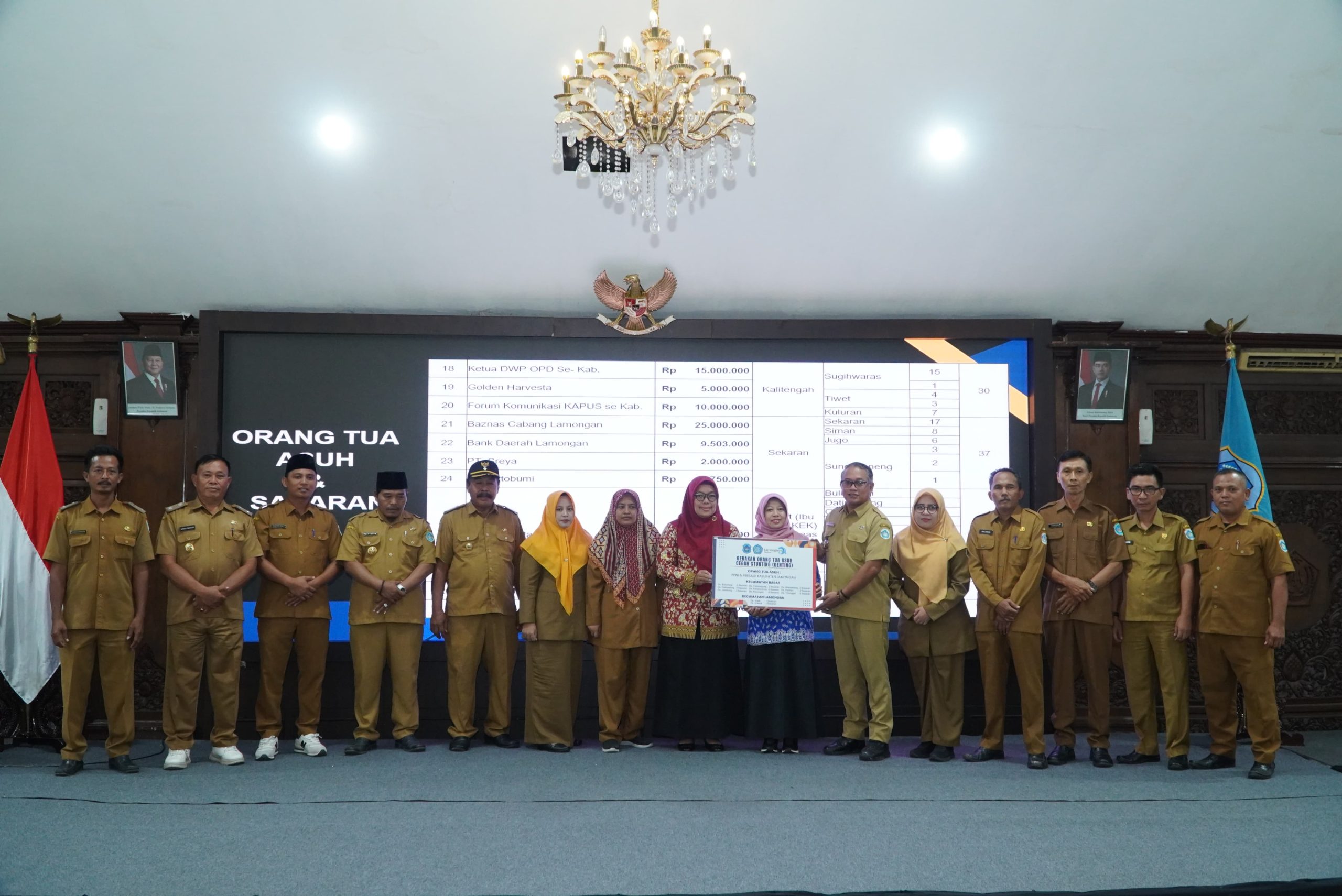 Lamongan,InfoFaktual.com, – Tim Penggerak PKK Kabupaten Lamongan di bawah komando Ibu Anis Kartika Yuhronur Efendi yang juga merupakan Ketua Genting Lamongan, menyalurkan bantuan Program Genting (Gerakan Orang Tua Asuh Cegah Stunting) sebesar Rp. 190.253.000 untuk 159 balita stunting dan 30 ibu hamil rentan di Lamongan. Bantuan ini diserahkan secara simbolis pada Selasa (13/1) di Pendopo Lokatantra Lamongan.