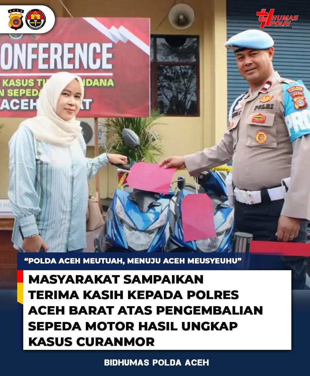 “Kami mengundang masyarakat yang merasa kehilangan motor untuk datang ke Polres Aceh Barat. Jika dapat menunjukkan bukti kepemilikan yang sah, kendaraan tersebut akan kami serahkan kembali,” kata AKBP Yhogi.