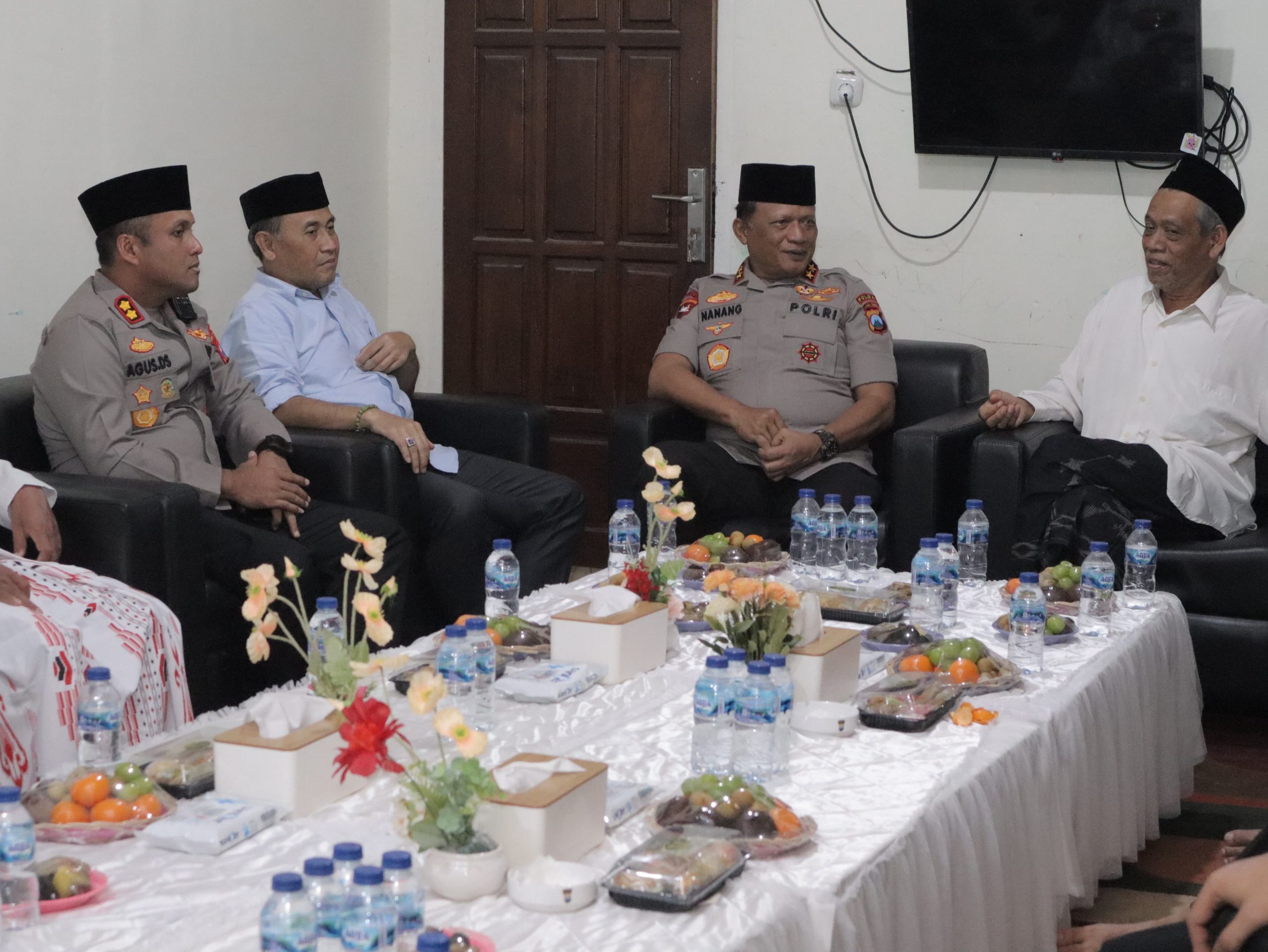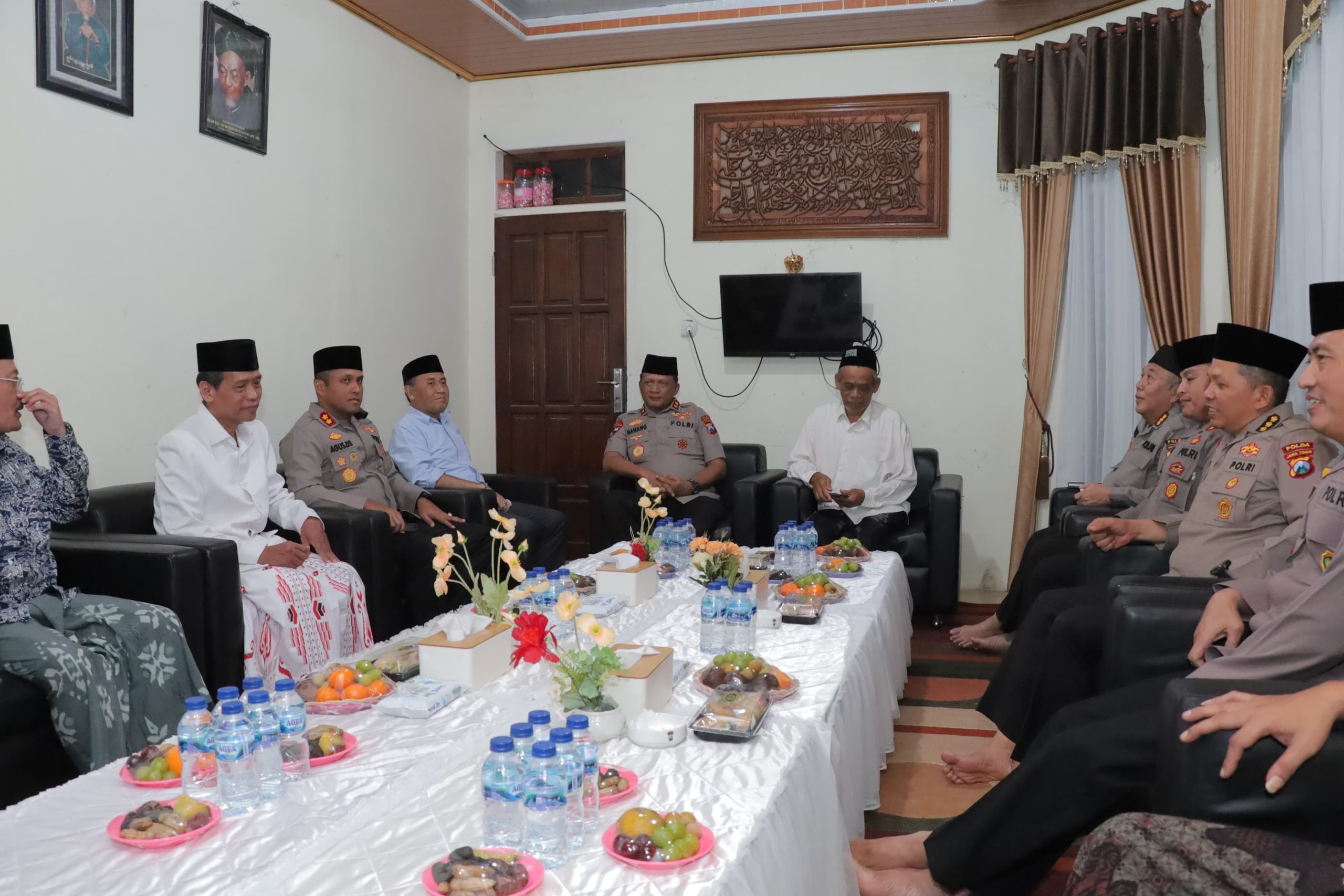 Setibanya di lokasi, Kapolda Jatim bersilaturahmi dengan pengasuh serta jajaran pengurus pondok, sekaligus menyerahkan tali asih sebagai bentuk kepedulian dan sinergitas Polri dengan tokoh agama.