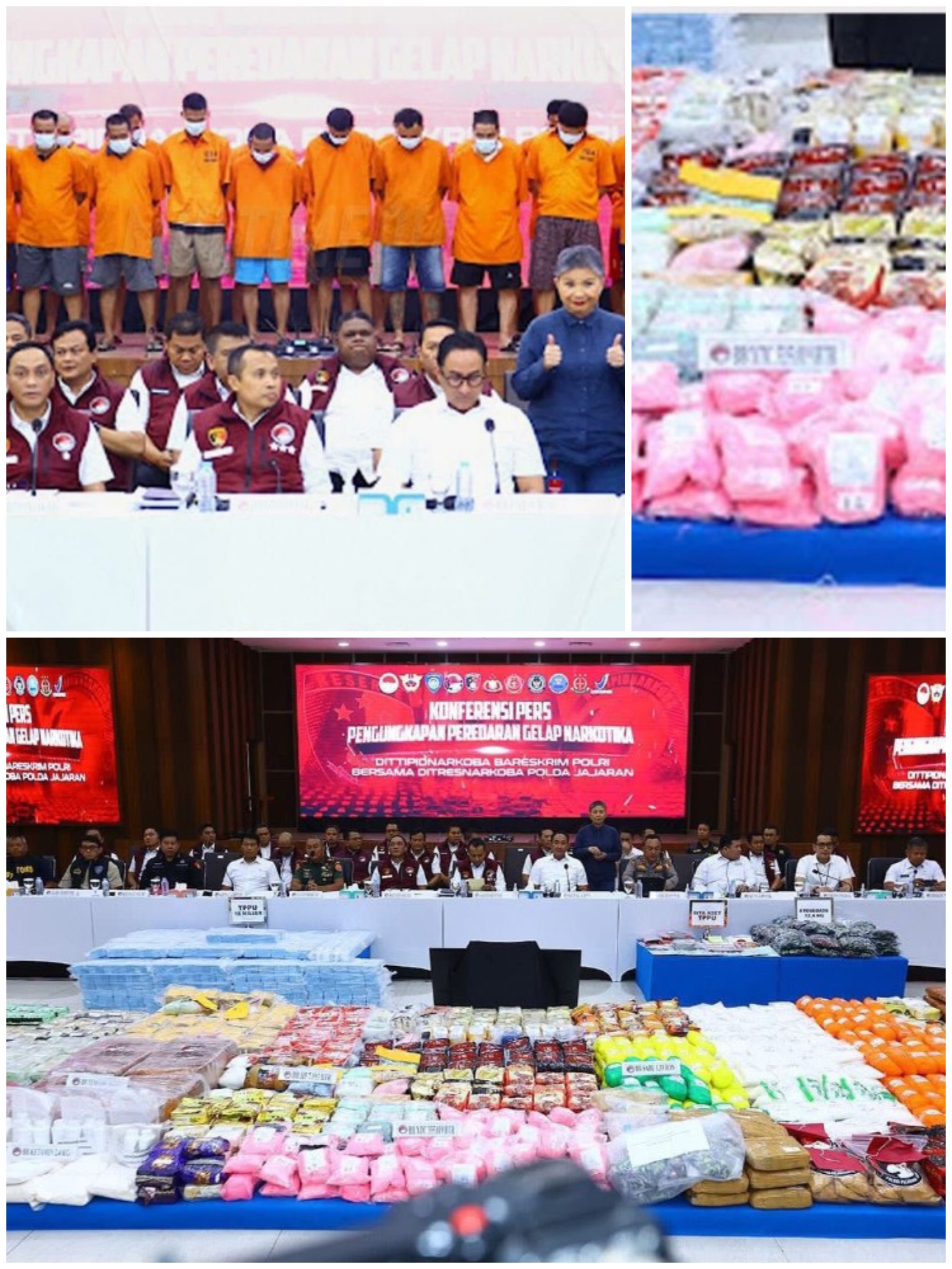 Diumumkan bahwa 51.763 tersangka telah diamankan, dengan total penyitaan barang bukti fantastis mencapai 197,71 ton. Barang bukti tersebut didominasi oleh 184,64 ton ganja, 6,95 ton sabu, 1.458.078 butir ekstasi dan 1,87 ton tembakau gorila. Selain penindakan kasus utama,
