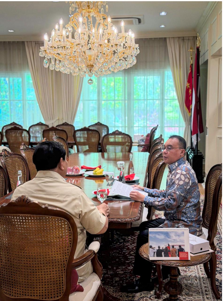 “Presiden Prabowo Subianto mengundang Wakil Ketua DPR RI sekaligus Ketua Harian Partai Gerindra, Prof. Sufmi Dasco Ahmad, di kediaman Widya Chandra, pada Rabu pagi, 29 Oktober 2025,” tulis Seskab Teddy.