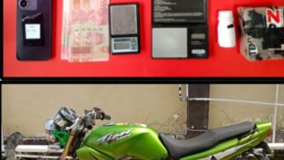 Selain narkotika jenis sabu, petugas juga mengamankan sejumlah barang bukti lainnya, antara lain 1 (satu) plastik klip kosong, 1 (satu) botol air mineral kosong merek Aquvina, 1 (satu) unit telepon genggam, serta 1 (satu) unit sepeda motor yang diduga digunakan dalam aktivitas peredaran narkotika tersebut.