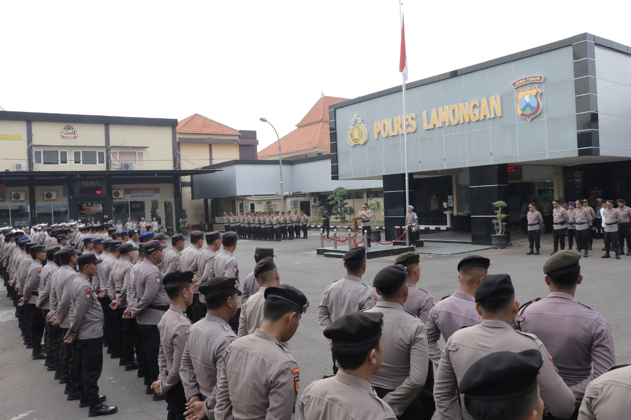 Upacara berlangsung khidmat dengan Wakapolres Lamongan, Kompol I Made Prawira Wibawa, S.S.T., S.I.K., M.I.K. bertindak selaku inspektur upacara.
