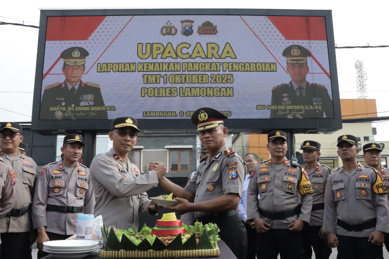 “Kenaikan pangkat ini bukan hanya penghargaan pribadi, namun juga kebanggaan bagi keluarga besar Polres Lamongan. Semoga hal ini menjadi inspirasi bagi seluruh anggota untuk terus menjaga semangat pengabdian dan profesionalisme.” Tutupnya.