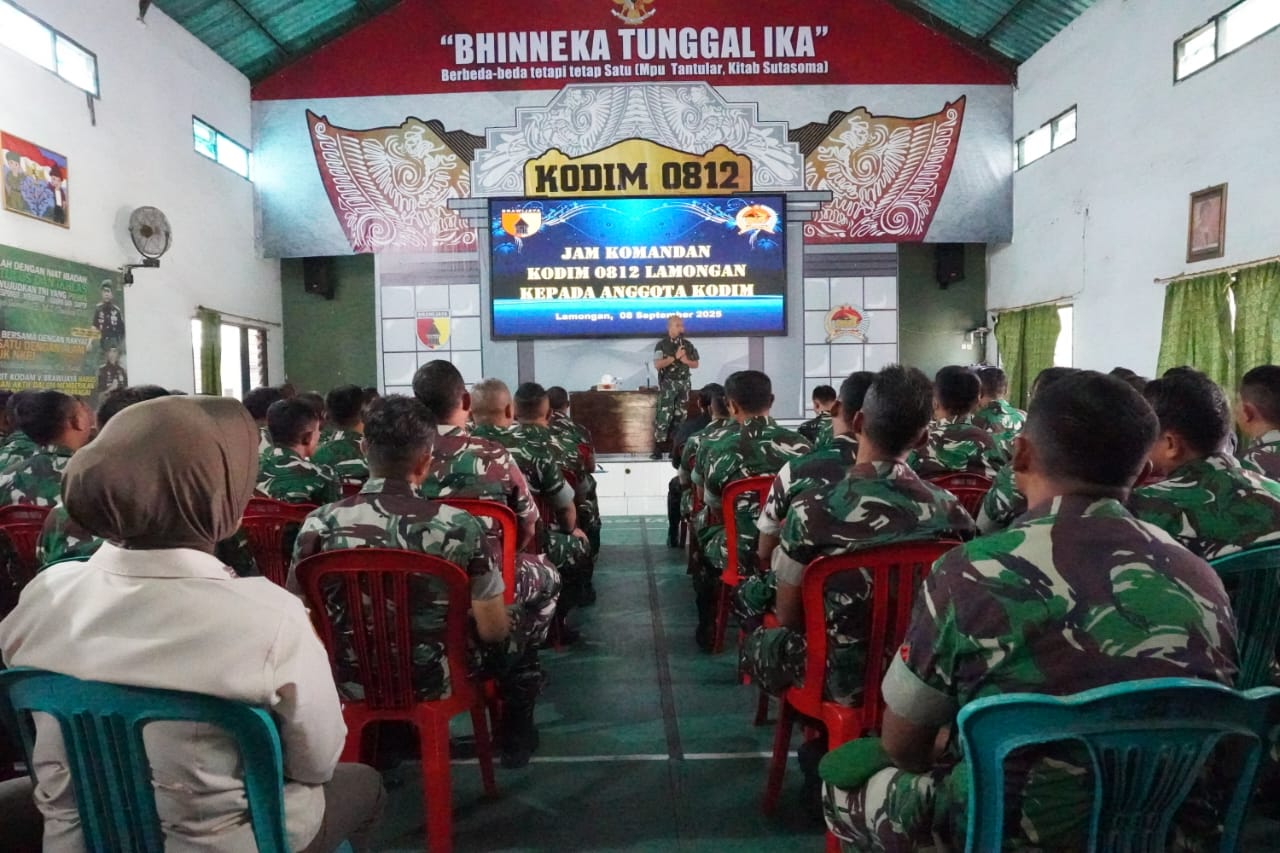 Lamongan,Info Faktual.com, – Komandan Kodim 0812/Lamongan, Letkol Inf Deni Suryo Anggo Digdo memberikan Jam Komandan perdana kepada anggota Kodim 0812/Lamongan baik Prajurit maupun PNS TNI.Kegiatan dilaksanakan di Aula Kadet Soewoko Kodim 0812/Lamongan, Senin (08/09/2025).
