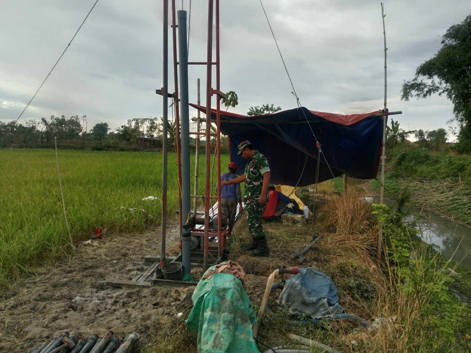 TNI Manunggal Air, Babinsa Koramil 0812/25 Sarirejo Dampingi Program Pembuatan Sumur Bor Di Wilayah