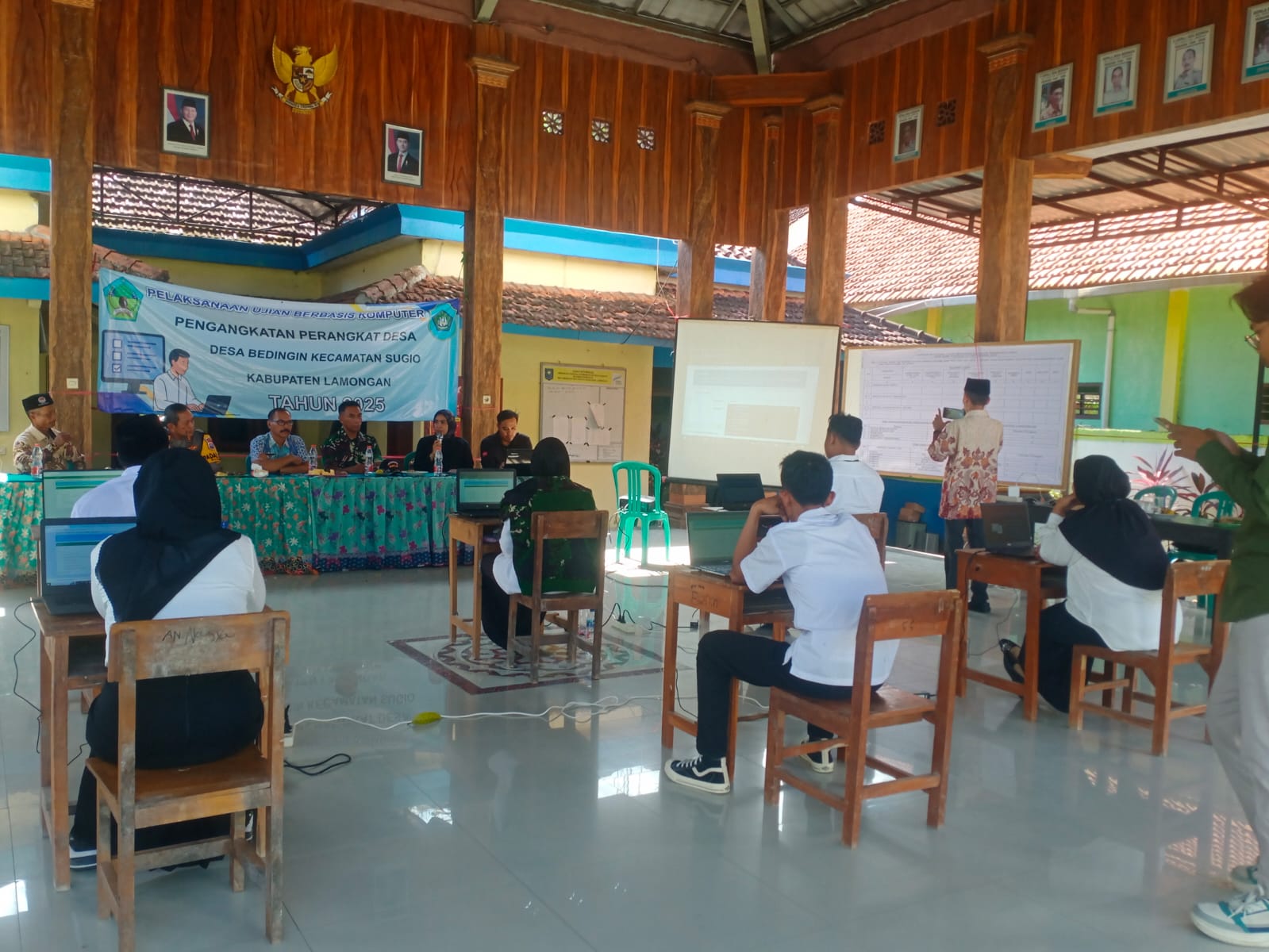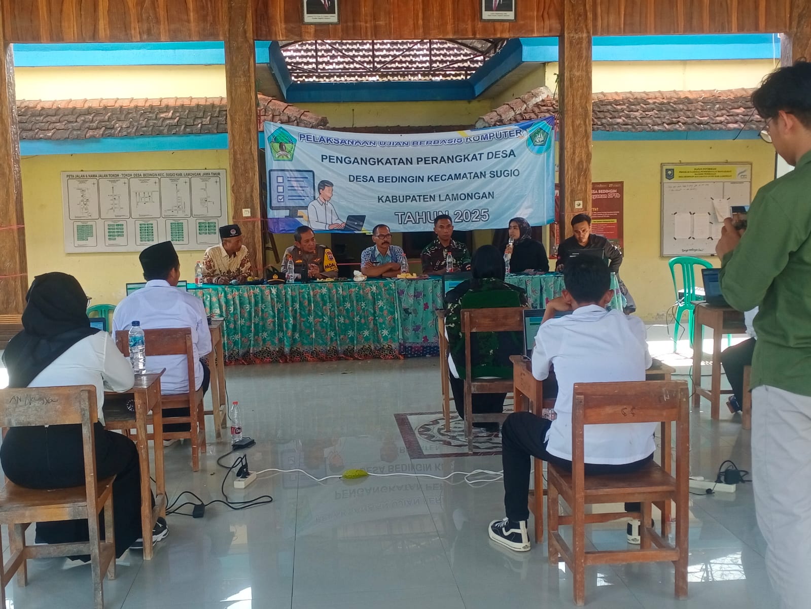 Kegiatan ujian perangkat Desa ini dihadiri dan diawasi oleh Muspika Sugio,Kades dan Perangkat Desa,Ketua RT dan RW,Ketua BPD,Tokoh agama,Tokoh Masyarakat dan Warga Desa Bedingin.