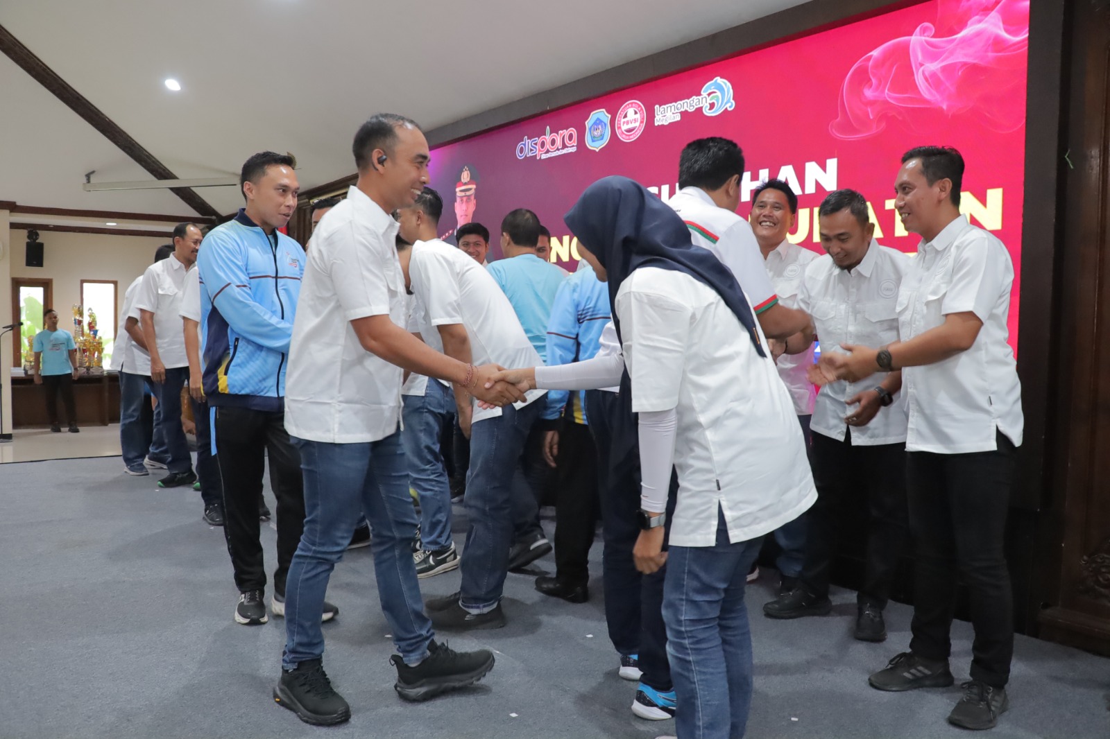 Turut hadir dalam kegiatan tersebut, Bupati Lamongan Dr. H. Yuhronur Efendi, M.BA., M.EK., jajaran Forkopimda Lamongan, Pengurus PBVSI Jawa Timur, Pengurus PBVSI Lamongan, serta para atlet bola voli Kabupaten Lamongan.
